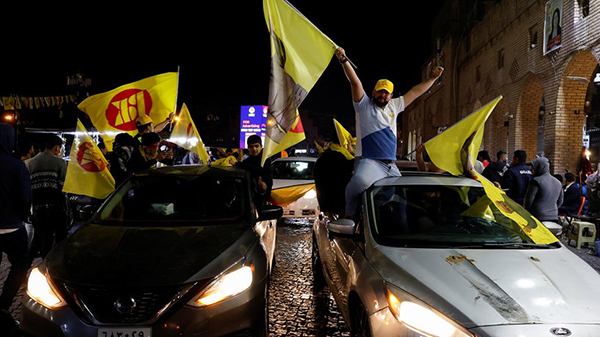 Supporters of the Kurdistan Democratic Party celebrate after voting is closed for the Iraq's Kurdistan region parliamentary election, in Erbil, Iraq October 20, 2024. REUTERS/Khalid Al-Mousily