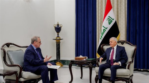 ورحب رشيد، ببوغدانوف، الذي نقل تحيات الرئيس الروسي فلاديمير بوتين وتمنياته بنجاح قمة بغداد وتحقيق الأهداف التي ستعقد من أجلها، كما حمل رئيس الجمهورية المبعوث الخاص شكره وتحياته للرئيس بوتين، مشيراً إلى ضرورة تطوير العلاقات الثنائية من خلال تفعيل الاتفاقيات وزيادة التبادل التجاري بين البلدين وبما ينسجم وتطلعات الشعبين الصديقين، وفق البيان.